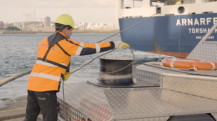 Ford Pros elektriske E-Transit er en fast del af arbejdet på Aarhus Havn, hvor den specialudviklede E-Transit spiller en afgørende rolle, når havnens skibe lægger til land. Den elektriske trossebil er den første af sin slags i Skandinavien og en vigtig brik i Aarhus Havns ambition om CO2-neutralitet i 2030.