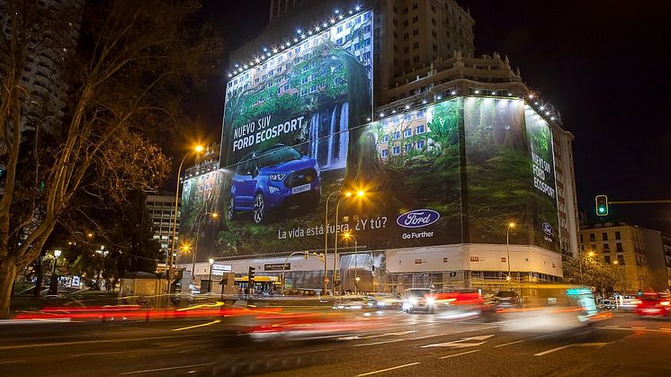 Fords billboard-reklame, der i alt måler 5.265 m2, hvilket svarer til 20 tennisbaner, hænger på den ikoniske Espana-bygning i det centrale Madrid i Spanien – og har fået titlen som ’Verdens Største Billboard-reklame’. Efter en officiel dommer fra GUINESS WORLD RECORDS havde inspiceret den 2.000 kg tunge installation, gjorde han kåringen officiel. Ford slog derfor den tidligere rekord fra Dhahran i Saudi Arabien, som målte 241,93 m2.