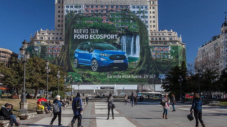 Ford har vundet titlen for verdens største billboard-reklame af GUINESS WORLD RECORDS med en enorm reklame for nye Ford EcoSport SUV i Madrid, Spanien.