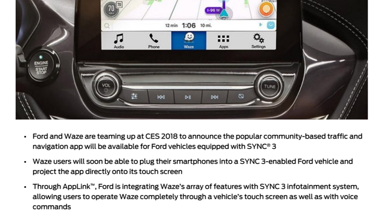- Waze community-baseret trafik- og navigationsapp til Ford biler med SYNC 3
