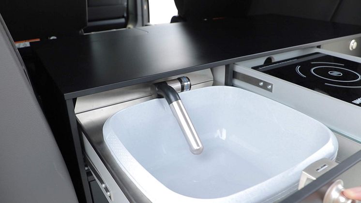 ”En af de største udfordringer for en rytter i en følgebil er benplads. I Ford Tourneo Custom giver den rummelige kabine god plads til at strække sig, lægge fødderne op og få et varmt eller køligt måltid mad og drikkevarer. Det luksuriøse indtræk og tæpperne giver en øget følelse af afslapning, mens den alsidige kabine giver god plads til tekøkken, køleskab og opbevaringsplads,” fortæller Andrew Merryweather, Brand Experience Manager, Ford Europa.