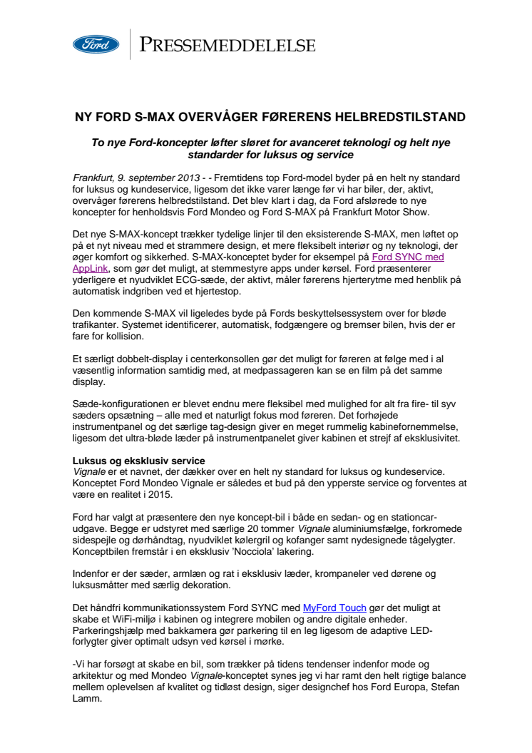 Fremtidens topmodel hos Ford byder på en helt ny standard for luksus og kundeservice, ligesom det ikke varer længe før vi har biler, der, aktivt, overvåger førerens helbredstilstand.