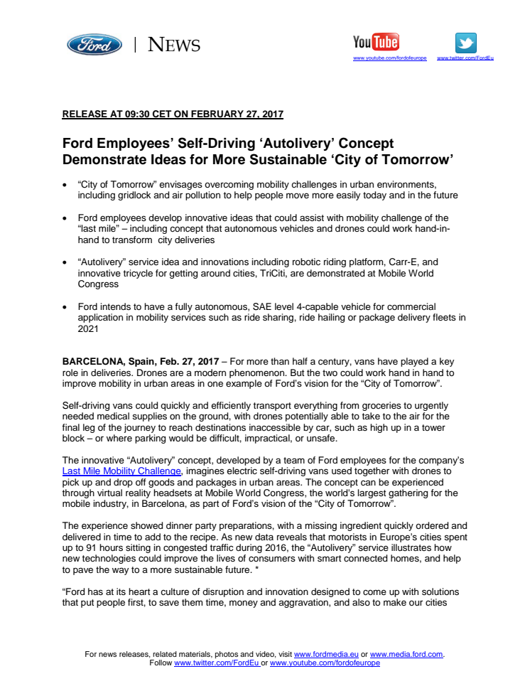City of Tomorrow - Autolivery på MWC 2017