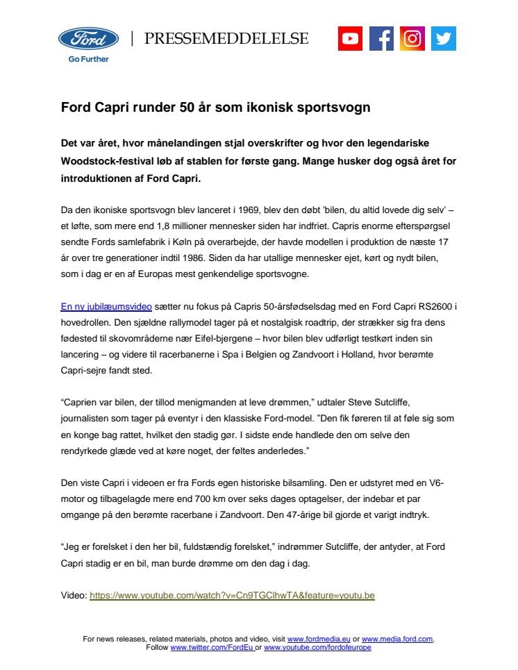 Ford Capri runder 50 år som ikonisk sportsvogn