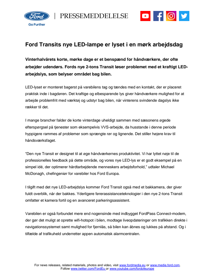 Ford Transits nye LED-lampe er lyset i en mørk arbejdsdag