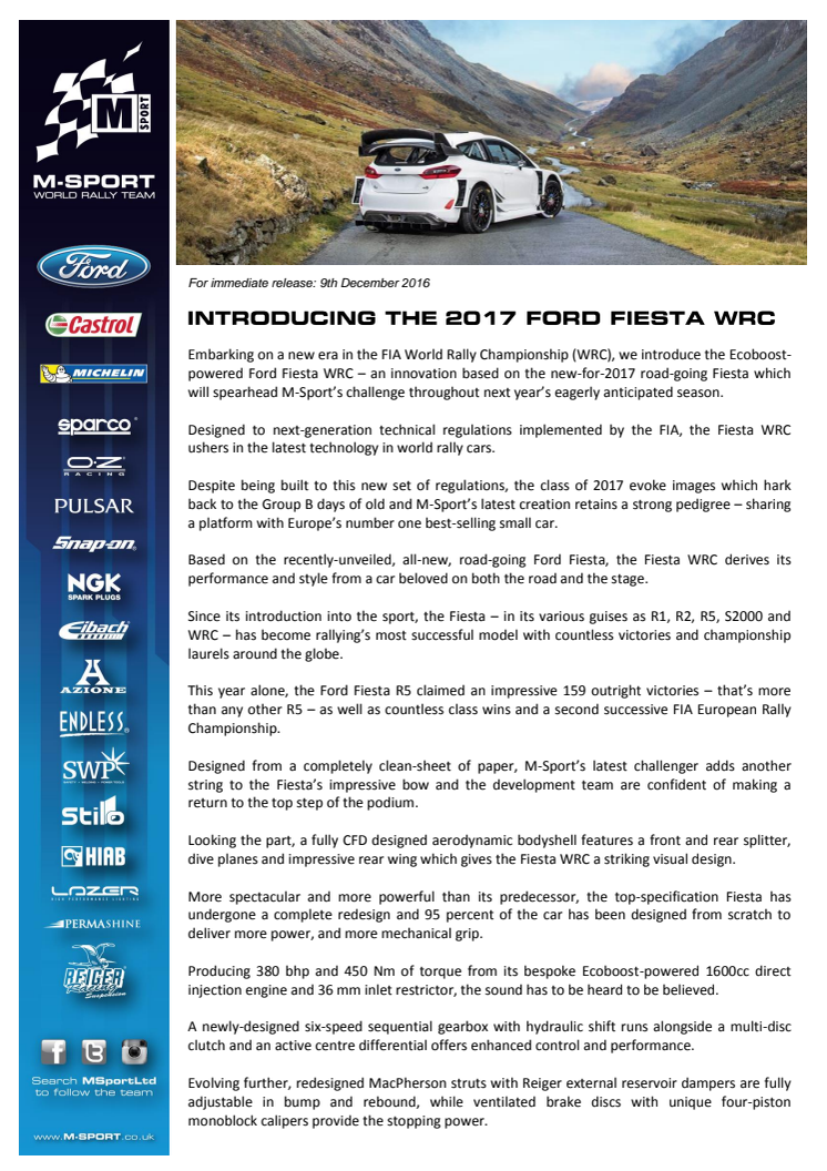 M-Sport introducerer den nye 2017 Ford Fiesta WRC