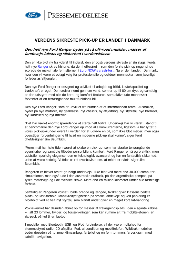 Den helt nye Ford Ranger byder på rå off-road muskler, masser af landevejs-luksus og sikkerhed i verdensklasse.