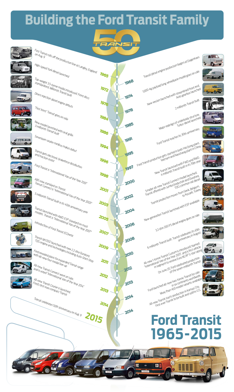 Her er en sjov oversigt over nogle af de vigtigste begivenheder i Ford Transits historie.