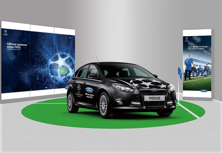 Ford markerer sit 20-års jubilæum som officiel sponsor for UEFAs Champions League-turnering, og derfor strør Ford-forhandlerne om sig med UEFA CL-merchandise til besøgende, som lægger vejen forbi for at prøvekøre en ny Ford.