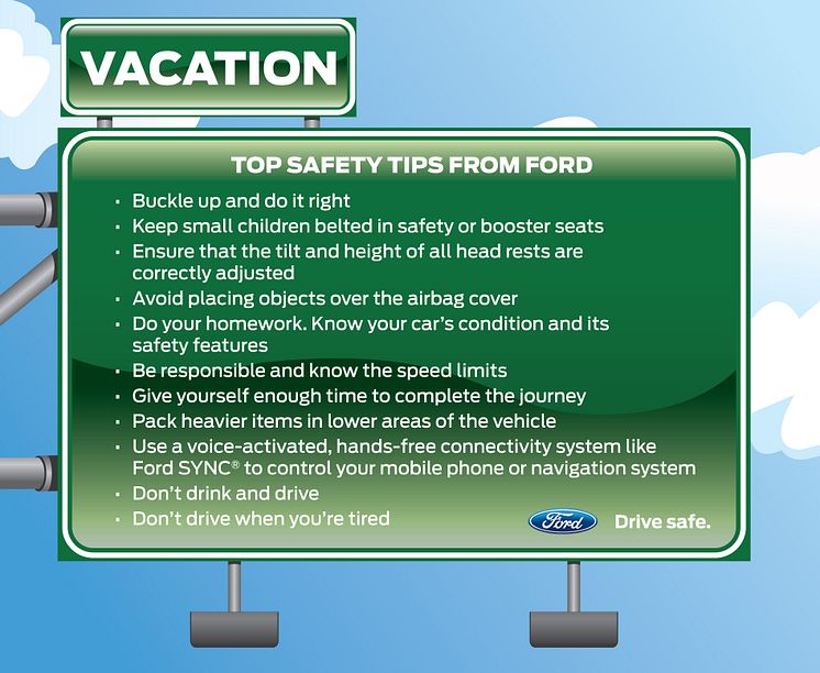 Her er en liste over tips og råd som Ford anbefaler du sætter dig ind i og udfører inden destinationen står på sommerferie.