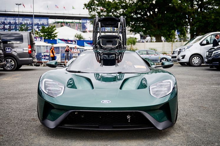 Jason Watt kørte til Le Mans i hans Ford GT med kørestolen spændt fast på taget. Verdens hurtigste handicapbil!