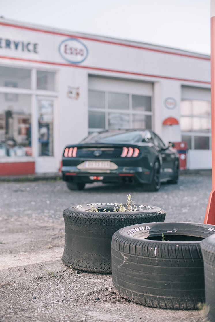 Mustang Bullitt fotograferet ved Esso-tanken i Sorø.