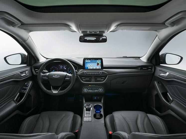 Det luksuriøse interiør i den nye Ford Focus Vignale byder på masser af innovativ teknologi - og plads til både opbevaring og passagerer.