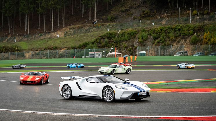 Det var ingen mindre end Jacky Ickx (som dengang kørte Fords superbil til sejr med partneren Jackie Oliver), der flagede tre generationer af Ford GT40 og Ford GT over målstregen, som alle gjorde flot figur i unikke Gulf-lakeringer. Ligesom i det legendariske 24-timers løb fra 1969 startede de tre vinderbiler sidst – og i dette tilfælde bag intet mindre end yderligere 69 GT40- og GT-modeller. Dén Ford GT40, der først krydsede målstregen under hyldesten, blev tilmed kørt af Jackys datter Vanina Ickx.