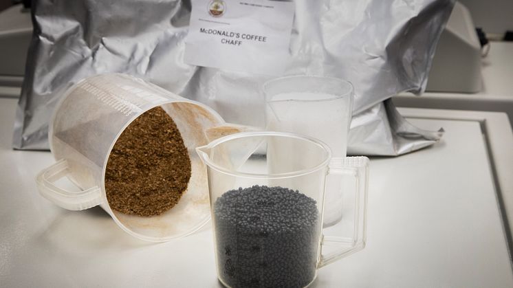 Ford og McDonald’s har i USA fundet en innovativ løsning til at udnytte de store mængder af kafferistningens biprodukt. Det gør de ved at blande biproduktet med plastik under høje temperaturer, der gør det nemt at forme og genanvende.