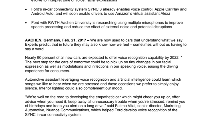 Har du haft en lang dag på arbejdet? Føler du dig stresset og træt? I fremtiden vil du kunne opleve en meget mere sympatisk bil, der kan aflæse dine følelser ud fra dit ansigtsudtryk og toneleje gennem avancerede kameraer og mikrofoner i bilen.