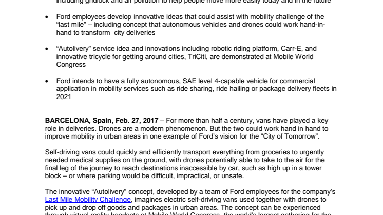 Du finder Ford på stand 3D21 i hal 3. Se mere information i Fords online press kit http://mwc2017.fordpresskits.com/