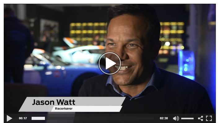 Se filmen og se, hvordan Jason Watt reagerede, da han modtog sin nye Ford GT ved et pressearrangement i København den 25. januar 2018.