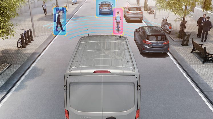 Ford E-Transit har avancerede førerassistancesystemer som standard og vil blandt andet være udstyret med Pre-Collision Assist, automatisk nødbremsesystem med fodgængergenkendelse og Lane-Keeping System.
