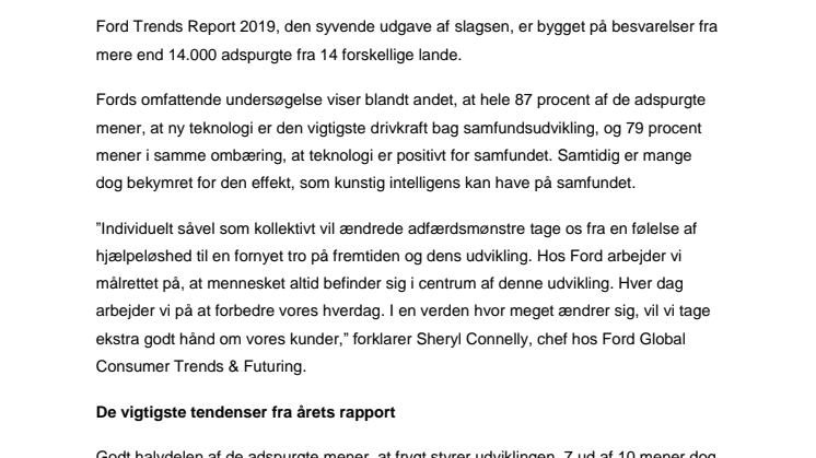 Fords Trend Report 2019 ser også frem mod disse nøgletendenser:
