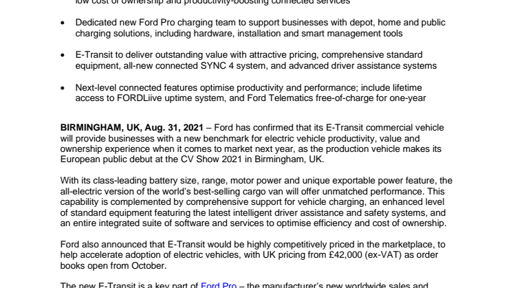 • Ford afslører den fuldt elektriske varebil E-Transit