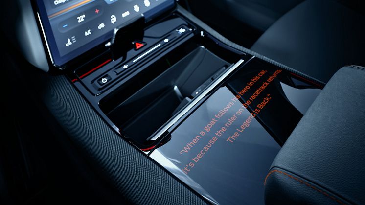 - Sæder i Feeltek Luxury Grain med orange detaljer og dobbelte racerlignende striber
