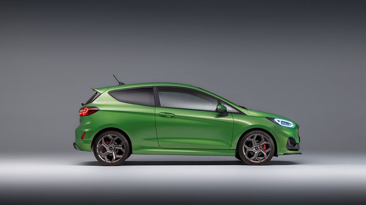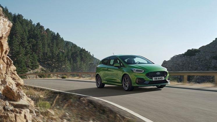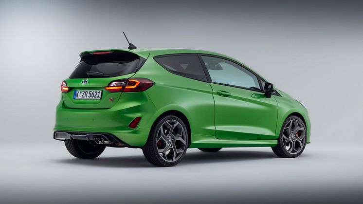 I dag præsenterer Ford også den nye performanceudviklede Fiesta ST. Også her mærkes de nye forbedringer tydeligt – blandt andet i form af drejningsmomentet, der er steget med 10 procent, nye LED-forlygter med Matrix-teknologi, nye egenudviklede Ford-performancesæder med 14 justeringsmuligheder, sporty designdetaljer – fx i form af en ny Chrystaline Grey-grill. Det er desuden også muligt at vælge Fiesta ST i en ny og modig farve – Mean Green.