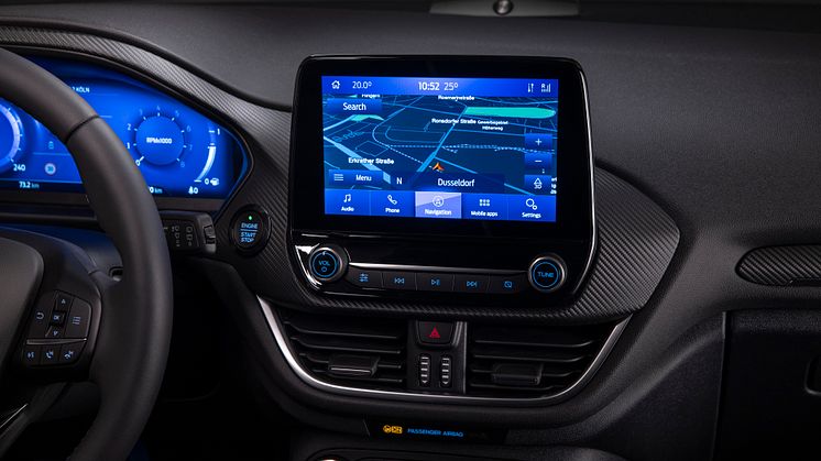 Infotainmentsystemet SYNC 3 (i ST-Line X) giver blandt andet føreren mulighed for at styre lyd, navigation og tilsluttede smartphones med enkle stemmekommandoer. Systemet leveres med Appel CarPlay og Android Auto, der begge understøttes af en 8” touchscreen.