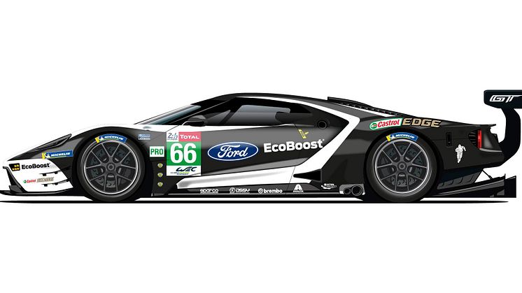 De fire design har hver sin historie: Ford GT #66, som køres af Stefan Mücke (Tyskland), Olivier Pla (Frankrig) og Billy Johnson (USA), er forsynet med et sort eksteriør, der drager paralleller tilbage til Ford GT40, som Bruce McLaren og Chris Amon vandt Le Mans med i 1966.