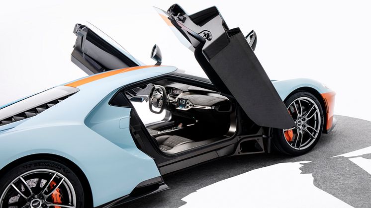 For nylig blev også en GT Heritage Edition-specialudgave annonceret, som fejrer 50-årsjubilæet for Ford GT40’s Le Mans-sejr i både 1968 og 1969. Denne limited edition er dekoreret med en Gulf Oil-lakering, der inkluderer farverne Heritage Blue og Heritage Orange.