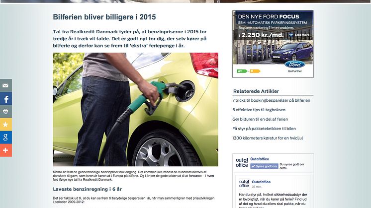 - Med OutOfOffice.tips får brugeren en portal, der samler central viden på ét sted. Her findes information om både trafiklovgivning og sikker montering af cykelanhængeren, men også om, hvordan en nedlagt fasan tilberedes på et rejseblus, eller hvor man finder områdets bedste skipister, forklarer Lene Dahlquist, der er pressechef hos Ford.