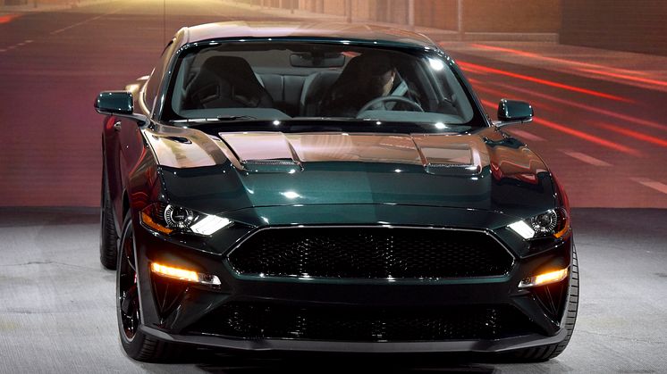 - Den originale Mustang GT fastback, fra 1968, som sammen med Steve McQueen var stjernen i den prisvindende filmklassiker ”Bullitt”, kørte ind på Fords NAIAS scene, og endte dermed 40 års mysterium om bilens tilstand og opholdssted.