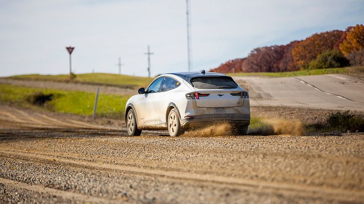 Ford har som en del af deres tests også sendt Mach-E ud på en knap 500 km. lang strækning bestående af grusveje for at sikre sig, at bilens lakering kan holde til diverse småsten, den måtte møde på sin vej.