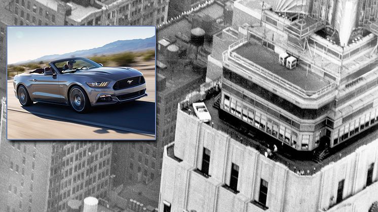 Et ikon vender tilbage til udgangspunktet. Det kunne have været overskriften for arrangementet, da et eksemplar af den spritnye Ford Mustang convertible blev skilt ad, stoppet ind i fire elevatorer og hejst 86 etager til vejrs – til toppen af Empire State Building i New York, hvor ’ponyen’ blev samlet igen til ære for presse og Mustang-fans fra hele verden. Anledningen er 50-året for den allerførste Ford Mustang, som også dengang blev præsenteret på toppen af Empire State Building.