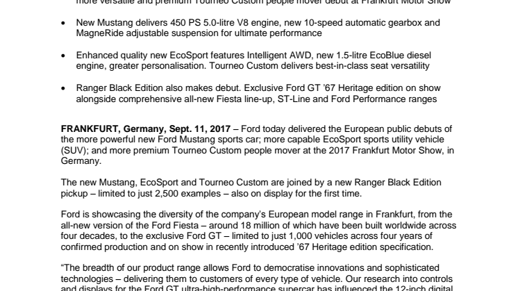 Ford @ IAA 2017: Fords nyheder på Frankfurt Motorshow - fra den fornyede Mustang til den frække EcoSport