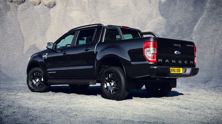 Der bliver fremstillet blot 2.500 eksemplarer af den nye Ranger Black Edition,en specialudgave af den bedst sælgende pickup i Europa. Den er baseret på den populære Limited-udstyrsversion, men de mange kromelementer er erstattet af indfarvede overflader – lakeringen Absolute Black møder sort lak på grillen, alufælgene og de øvrige eksteriørdetaljer.