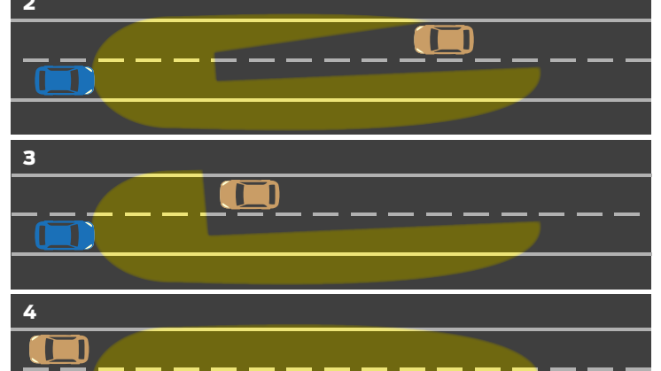 Når mørket falder på, vil man kunne se forlygternes auto-funktion slå til, og helt uden førerens traditionelle indgriben styres LED-forlygternes adaptive funktioner automatisk. Når man kører ned ad den mørke landevej og møder en modkørende, vil de avancerede forlygter blænde af for lige præcis den del af vejen, hvor den modkørende befinder sig – og man kan følge, hvordan lygterne kontinuerligt blokerer for lyset i den modkørendes bane, så der ingen risiko er for, at den anden bils fører blændes af forlygterne. Områderne ved siden af og omkring den modkørende bil er fuldt oplyste.