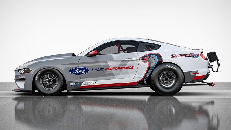Den larmer slet ikke og sluger ikke én dråbe brændstof. Til gengæld kan den tilbagelægge en kvart mil (402 meter) på lidt over 8 sekunder med en topfart på 273 km/t. For første gang nogensinde introducerer Ford Performance en Mustang Cobra Jet, der er 100% elektrisk.