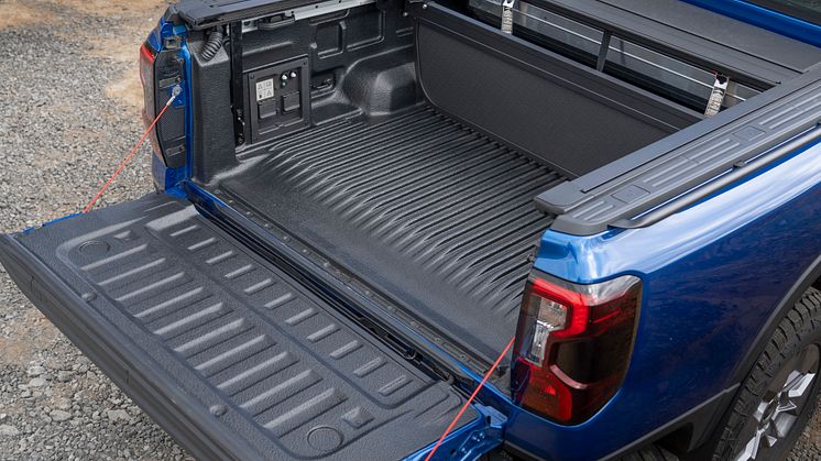 Som den første i Ranger-serien kommer den nye plug-in hybrid med Ford Pro Power Onboard – en funktion, der forvandler bilen til en mobil strømkilde til værktøj og andet udstyr. Strømudtag findes både i kabinen og på ladet.