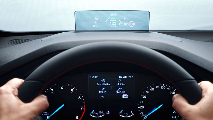 - Fords første head-up display (HUD) i Europa, som hjælper føreren med at holde øjnene på vejen.