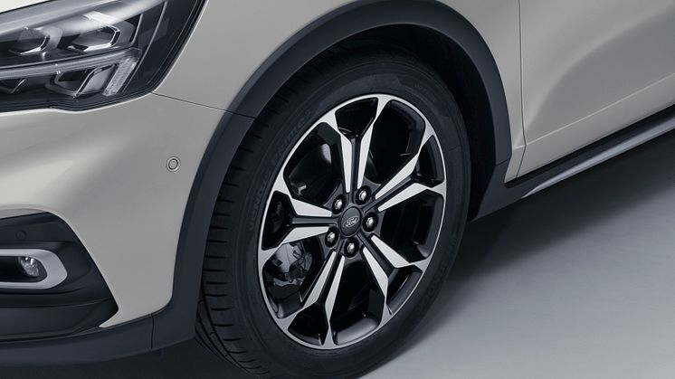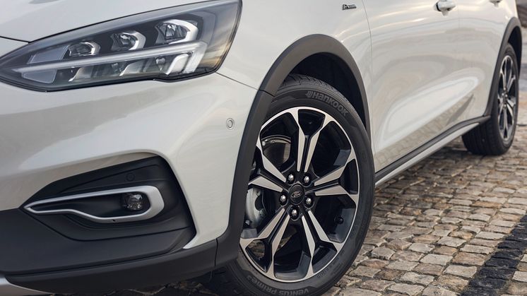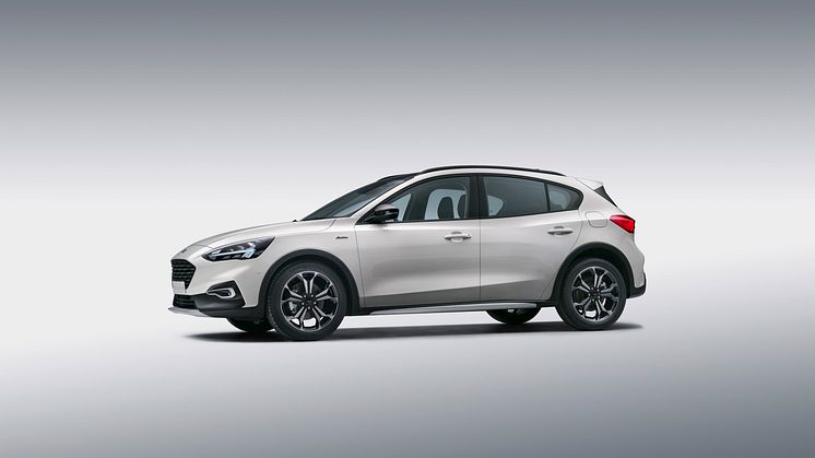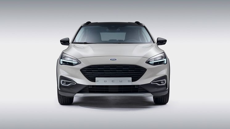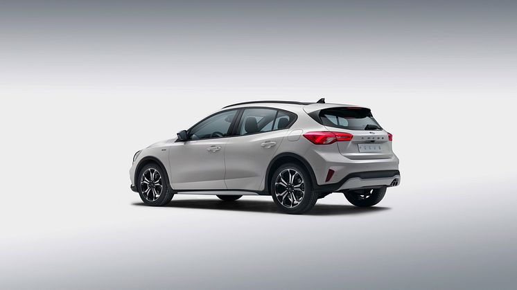 - Focus Active har en forhøjet frihøjde og beskyttende sorte lister omkring skærmene og siderne. Beskyttelsesplader for og bag samt sidepaneler lakeret i sølvfarve for at skabe kontrast – og et unikt design af fronten.