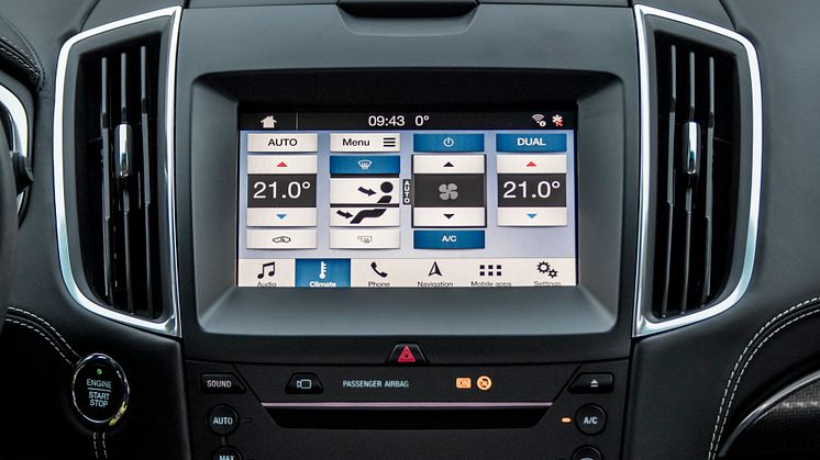 Den nye Ford Edge fås med trådløs opladning og Fords SYNC3-infotainment-system, der gør, at du kan styre både tilkoblede smartphones, audio, navigation og klima blot ved hjælp af talekommandoer og en 8”-touchskærm i farver.