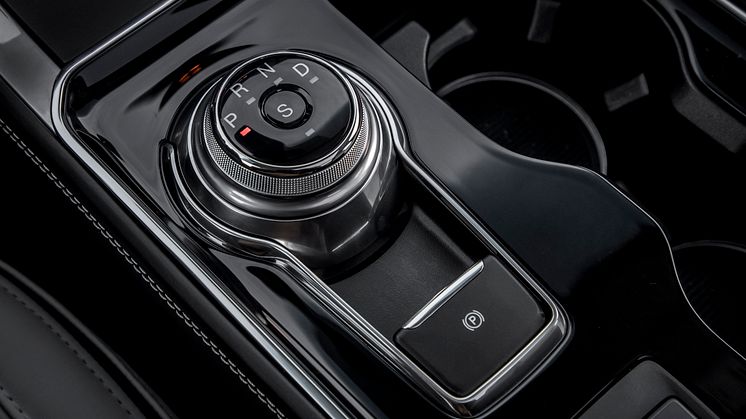 Harmonisk højkvalitetsmateriale og avanceret design giver interiøret i den rummelige Ford Edge en eksklusiv fornemmelse. Automatgearet i den nydesignede centerkonsol kommer i form af en moderne og ergonomisk drejeknap, der frigør plads og giver lettere adgang til f.eks. mobil opladning, mens den elektriske parkeringsbremse frigør yderligere plads til opbevaring af ting i aflægningsrum.