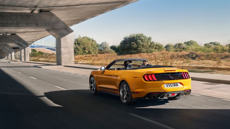 Mustang GT California Special er tilgængelig som cabriolet med sort foldetag, der i løbet af otte sekunder forvandler bilen til en cabriolet. Det er muligt at vælge bilen i hele ni forskellige farver – fx den karakteristiske cyber orange.
