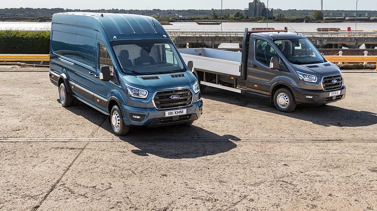 Ford introducerer den største og stærkeste variant af Transit hidtil med en totalvægt på 5 ton. Den fås som Van eller Chassis Cab med en nyttelast på henholdsvis op til 2.383 og 2.558 kg.