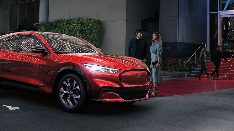 Mustang Mach-E har udover et lækkert design også en lang udstyrsliste, der blandt andet omfatter B&O Premium audiosystem med 10 højtalere, 15,5” touchscreen, LED-forlygter med automatisk blændfrit fjernlys, Sensico kunstlædersæder, håndfri el-bagklap, opvarmet rat og forsæder, trådløs oplader, røde bremsekalibre, 19” alufælge og meget mere.