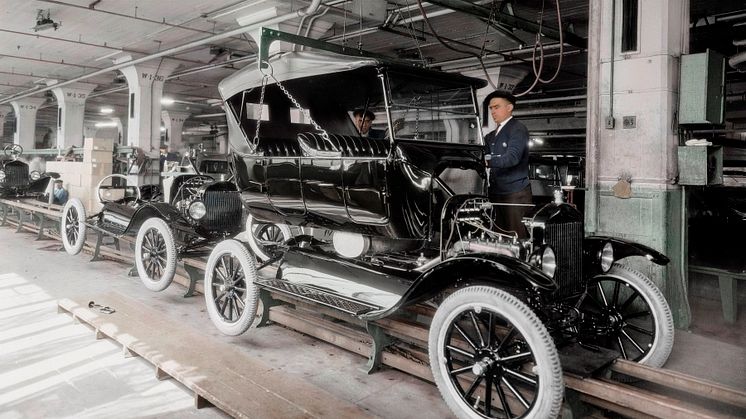 For 100 år siden revolutionerede Henry Ford den globale tanke om produktion – det bevægelige samlebånd blev introduceret i bilproduktionen. Bilmodellen, som skulle masseproduceres var Fords Model T. Model T bestod af 3.000 enkle dele og processen var inddelt i 84 trin. Arbejdet blev udført af arbejdsgrupper mens bilen blev trukket fra station til station med tov. Denne ”nye” produktionsmetode var ufattelig tidsbesparende, og reducerede produktionstiden fra 12 timer til ca. 90 minutter pr. bil.