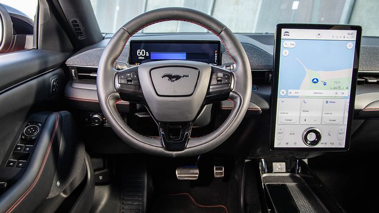 Det er ikke kun lækkert udstyr, du får glæde af, når du sætter dig bag rattet i Mustang Mach-E. Den elektriske bil er for eksempel tæt integreret med FordPass-appen. Med appen på telefonen, kan du nemt holde dig opdateret om den nyeste viden om bilen. For eksempel kan du tjekke alt fra bilens aktuelle ladetilstand til ruteplanlægning med indlagte ladepunkter undervejs. Det er også muligt at forvarme eller nedkøle kabinen via appen, inden den skal ud at køre en kold vintermorgen eller varm sommerdag. Derudover kan du også låse bilen op med telefonen uden at have den fysiske nøgle på sig.